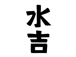 ②事物。水と好字の「吉」から。熊本県八代市坂本町中津道に分布あり。同地は球磨川に面した土地。