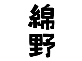 大阪府、山口県、静岡県。地形。綿と野から。助詞の「の」に「野」を使用する例あり。神奈川県平塚市桃浜町では石川県能美市で江戸時代に木綿を扱って神奈川県横浜市に東京時代に来住したと伝える。大阪府高石市千代田に江戸時代にあった。善隣。兵庫県神崎郡神河町鍛治に分布あり。
