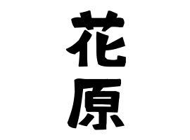 ③愛媛県今治市菊間町川上の小字の花原から発祥。同地付近に分布あり。地名はハナバラ。