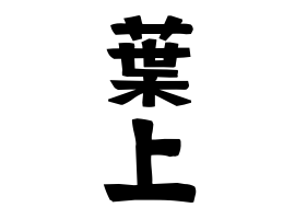 ②個人名。平安時代・鎌倉時代の僧侶である明菴栄西の房号の葉上房から。葉上房はヨウジョウボウ。僧侶による明治新姓。寺の例。岡山県和気郡和気町原にある天台宗の元恩寺、兵庫県丹波篠山市南矢代にある天台宗の高仙寺。元恩寺の山号は岩生山、高仙寺の山号は松尾山。