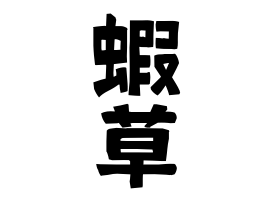 石川県小松市。事物。蝦と草から。海老草はエビグサでタデ科の多年草。石川県小松市大領町に分布あり。