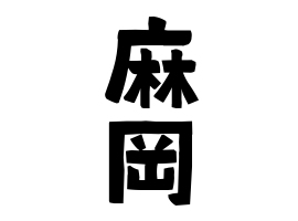 ②地形。鹿児島県の奄美群島の一字姓である麻に「岡」を追加。推定では1953年の日本復帰時。鹿児島県大島郡龍郷町嘉渡に分布あり。麻参照。