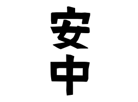 ※コリア(朝鮮・韓国)系。地形。康と同音の「安」に「中」を追加。福岡県北九州市(旧:門司市)で1955年5月6日に帰化の記録あり。本姓は康。康参照。