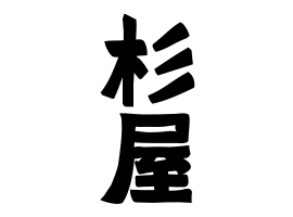 長崎県、山口県・広島県。職業。杉屋の屋号から。推定では江戸時代の屋号による明治新姓。長崎県長崎市三重町に分布あり。