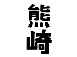 ②長崎県雲仙市吾妻町永中名の小字の熊崎から発祥。地名はクマサキ。長崎県雲仙市吾妻町田之平名の小字に熊崎あり。地名はクマサキ。推定では広域の地名の残存。
