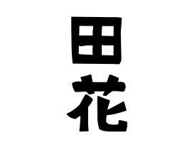 ①地形。田と花から。京都府京都市北区紫竹下竹殿町に分布あり。山形県鶴岡市馬場町が藩庁の庄内藩士に江戸時代にあった。