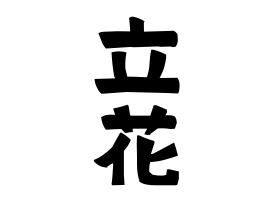 ①事物。橘の異形。鹿児島県出水市下知識町に江戸時代にあった門割制度の立花門から。門による明治新姓。