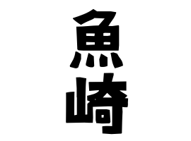 兵庫県、大阪府、愛媛県。地形。魚と突き出た土地から。兵庫県高砂市伊保崎(旧:魚崎)は鎌倉時代に記録のある地名。地名はウオサキ。兵庫県神戸市東灘区の魚崎は南北朝時代に記録のある地名。愛媛県宇和島市津島町北灘に分布あり。同地は豊後水道に面した土地。兵庫県南あわじ市阿那賀に分布あり。同地は瀬戸内海に面した土地。兵庫県豊岡市竹野町竹野、島根県浜田市元浜町、富山県魚津市港町に分布あり。同地は日本海に面した土地。